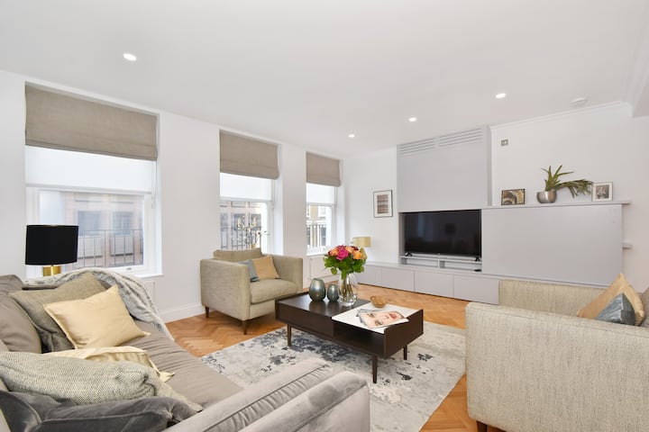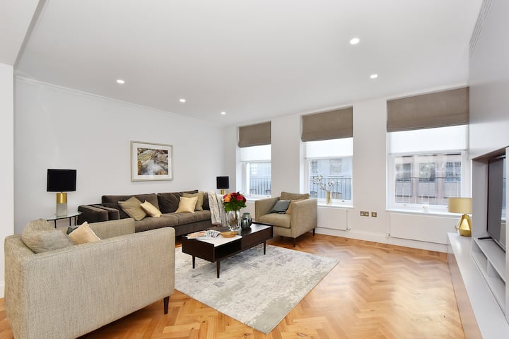Apartamenti yt elegant, i ri dhe shumë i madh me 3 dhoma gjumi 3.5 banja është në një ndërtesë që është rinovuar plotësisht deri në shkurt 2018 dhe është mobiluar rishtas në atë kohë. Ka një ashensor në të gjitha katet. Me mobilje dhe çdo detaj të dekorimit të zgjedhur me kujdes nga një projektues i famshëm i brendshëm, ky apartament i bukur ndodhet në vendin më të mirë në Mayfair me shumë nga pazaret më të mira të Londrës, pamjet dhe teatrot e saj të gjitha brenda distancës së lehtë në këmbë. I vendosur pranë hotelit të famshëm në botë Brown, me hotelin më të njohur The Ritz vetëm pak çaste më larg, një nga arkadat më elegante të Londrës – The Royal Arcade – të çon në Bond Street, shtëpia e Gucci, Prada, Tiffany & Co, Cartier, Louis Viton – lista vazhdon më gjatë. Green Park, St. James 's Park dhe Hyde Park janë një shëtitje e shkurtër nga apartamenti yt duke vendosur Buckingham Palace, Westminster Abbey, Shtëpitë e Parlamentit, London Eye, Trafalgar Square, Covent Garden dhe shumë më tepër brenda largësisë së apartamentit tënd. Cirku Piccadilly dhe Sheshi Leicester janë të dyja afër dhe shumica e teatrove të Londrës janë disa minuta larg nga apartamenti yt. Rruga Regent, Rruga Oxford, Knightsbridge dhe shumë rrugë të tjera të mëdha pazari janë në distancë ecjeje ose një udhëtim të nxehtë me taksi ose nga stacioni i Parkut të Gjelbër. Muzeu Faraday është më tej në të njëjtën rrugë dhe Akademia Mbretërore në rrugën tjetër. Galeria Kombëtare dhe Galeria Kombëtare e Portreteve janë në një distancë të lehtë në këmbë dhe muzetë e tjerë të Londrës – Muzeu Britanik, Muzeu Kombëtar i Historisë, Muzeu i Shkencës dhe Muzeu Victoria & Albert janë vetëm një udhëtim i shkurtër me taksi ose tub larg në rrugë të drejtpërdrejta.