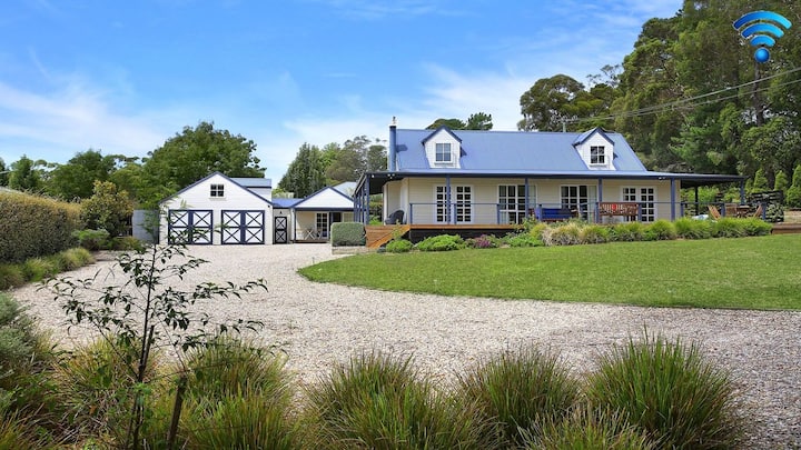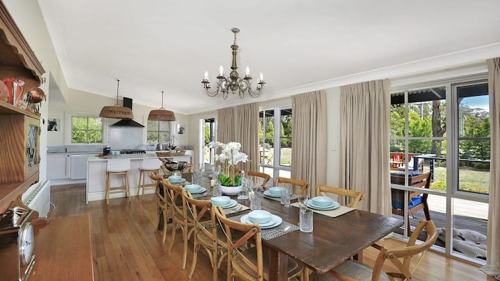 Duncraig House - Shtëpi e madhe me 4 dhoma gjumi dhe studio/vilë e veçantë me 2 dhoma gjumi. Spa me 6 persona në natyrë, verandë me diell, ngrohje në natyrë, gropë zjarri, kënd lojërash për fëmijë, wifi, i përshtatshëm për laptop, krevat portativ dhe karrige e lartë. Oxhak i madh i hapur, stil i mrekullueshëm gjatë gjithë kohës. Kopsht i madh, i rrethuar, miqësor me kafshët shtëpiake, pamje e bukur rurale, por vetëm disa minuta në fshatin Bundanoon.
