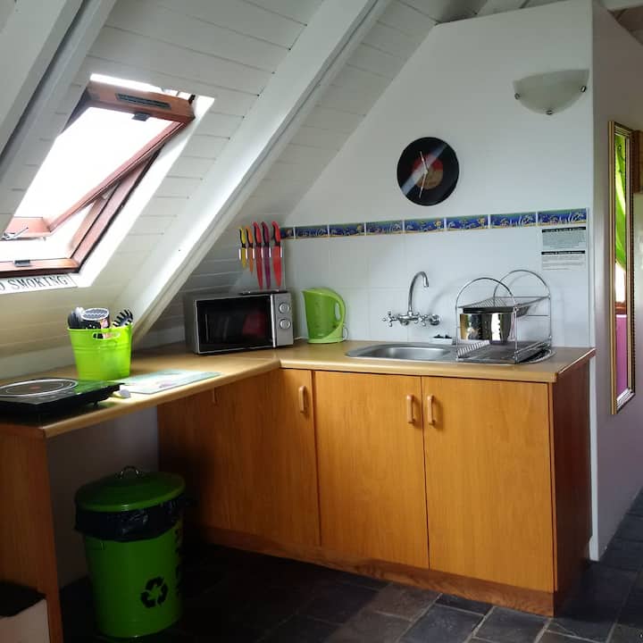 Vendndodhja, dekorimi dhe pamja! Kjo është ajo që do të ofrojë kjo njësi e bukur e gjallë lart. Afër plazhit dhe brenda distancës në këmbë nga të gjitha atraksionet. Hyrje më vete dhe zonë braai & Weber Braai me pamje mahnitëse nga ballkoni.