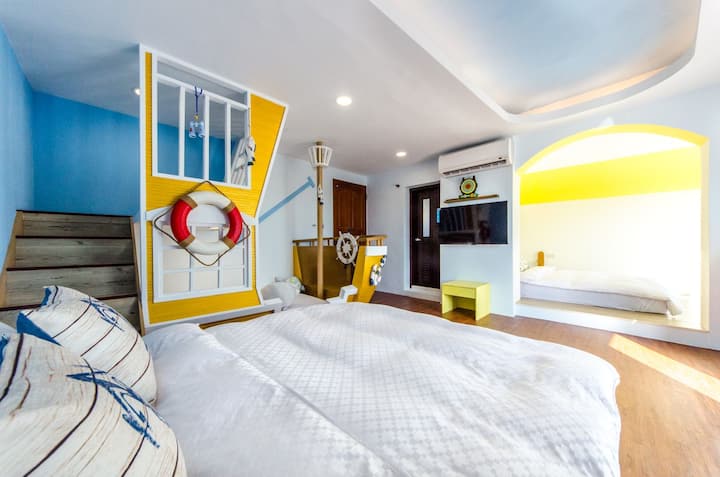 Dhomë familjare me ballkon deti dhe varkë deti në shtëpinë e vëllait Quan të Gjirit Jugor