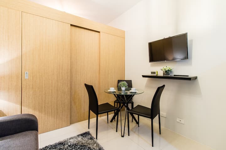 > Përveç kësaj, vendndodhja e apartamentit kondominial mundëson qasje të lehtë në transportin publik për të eksploruar zonën më të madhe të Metro Manila.