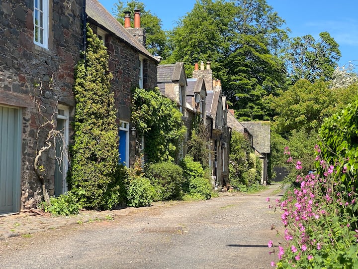 Vilë fshati në bregun e lumit të Kufijve Skoceze me kopsht