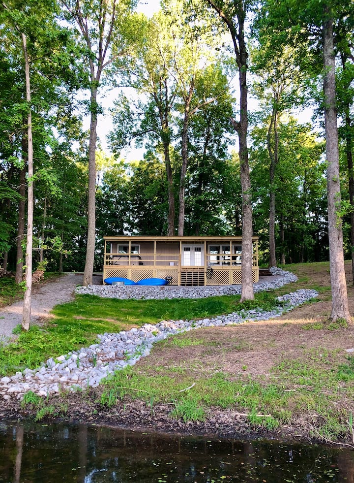 Kabinë e bukur buzë liqenit me vaskë me hidromasazh!
