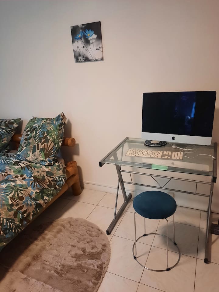 Një dhomë me wifi që është e përshtatur mirë për punë.