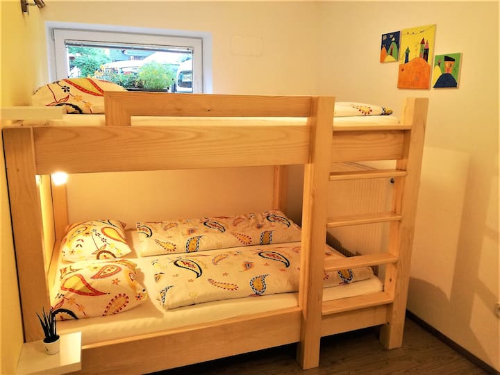 Do të udhëtosh me të vegjël? Kemi kënaqësinë të ofrojmë një krevat fëmijësh dhe një karrige të lartë sipas kërkesës. Na njofto paraprakisht. Ka një kodër argëtuese me slita vetëm 5 minuta më këmbë dhe në verë, fëmijëve u pëlqejnë shtigjet dhe përrenjtë e natyrës në afërsi.