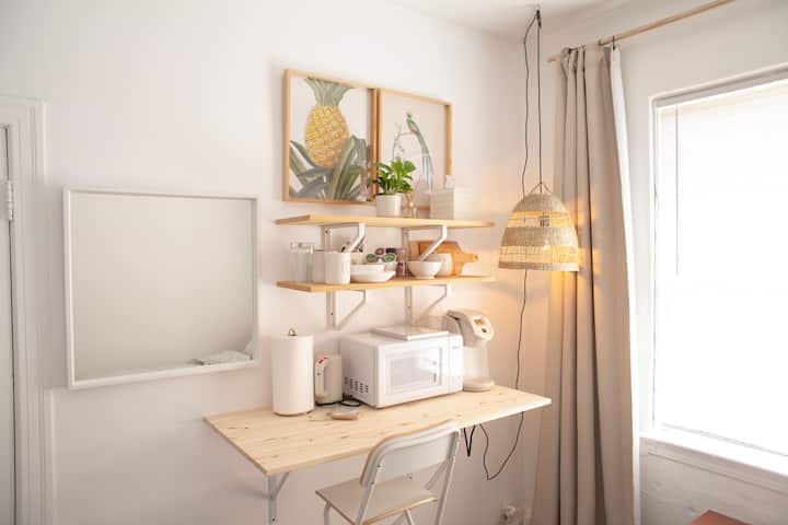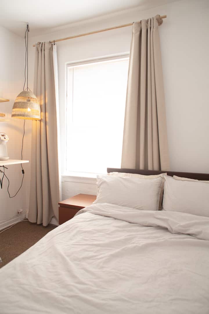 Apartament i rehatshëm privat me banjë të përbashkët në sallë