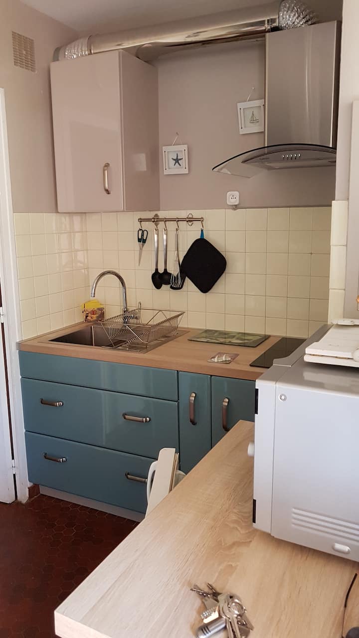 Kemi një studio buzë detit me qasje në një pishinë të përbashkët nga data 15 maj deri më 30 shtator për ambiente sezonale me qira.