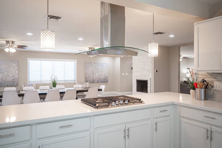 Shpëto në këtë oazë me 6 dhoma gjumi/4 banjo për 12 persona! Shijo një pishinë private me ngrohje dhe një sipërfaqe të madhe lirie.