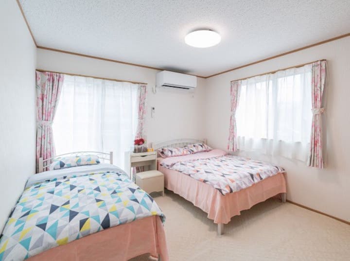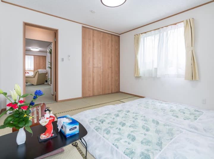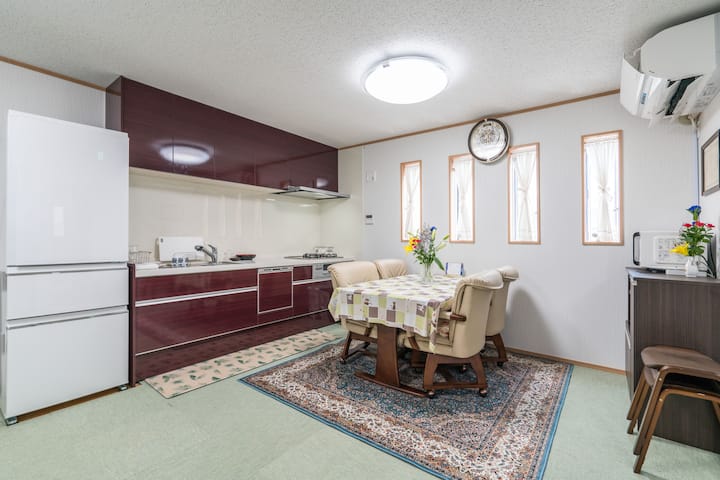 Objekti është i cekët në mars 2019 dhe është shumë i bukur dhe kemi marrë fjalët e tua nga vizitorët tanë.Të pajisura plotësisht me wifi, të gjitha tualetet janë me ngrohje.Të gjitha dhomat në katin e dytë janë 8 tapet tatami dhe ka 3 dhoma të stilit perëndimor 2 dhoma të stilit japonez 1.Dhoma e stilit japonez ka një tualet privat për dush.Tjetër e hapur për në dhomën e ndenjjes me një banjë të bollshme dhe tualet të veçantë.Kuzhina e bollshme e ndenjjes dhe ngrënies është një strukturë e klasit të lartë ku mund të shijosh gatimin.Ka një frigorifer, mikrovalë, tenxhere me oriz dhe enë tavoline, kështu që është në rregull vetëm të blesh përbërës nga vende të ndryshme në Nishikawaguchi.Ka një televizor në dhomën e ndenjjes në katin e dytë.Përveç dhomës, ajo është e përbashkët, por sigurisht, mund të prenotosh vetëm një dhomë.