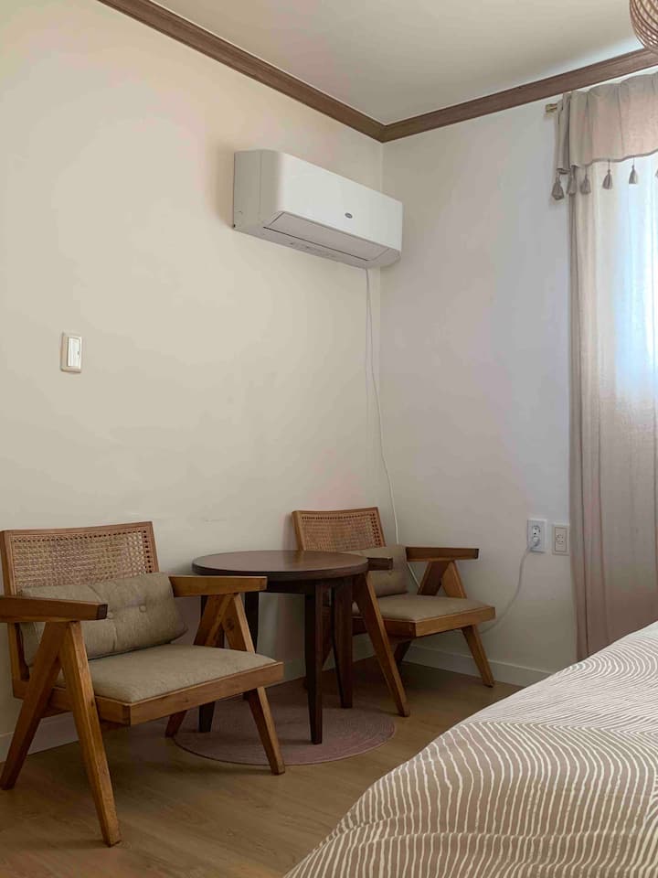 Hajodeli: Dhomë dyshe 02 (2 minuta më këmbë nga plazhi Hajodae, fjetje dhe mëngjes i pastër emocional) # Akomodimi Hajodae