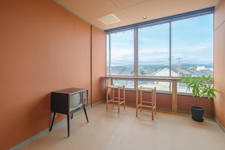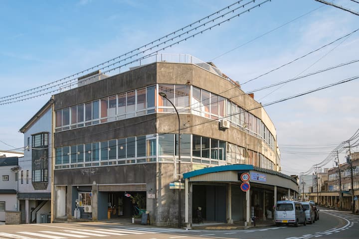 Shtëpia jonë e miqve është në 3F, në një ndërtesë të vjetër trekatëshe prej betoni që ndodhet në rrugën tregtare Showa me stil retro, e disponueshme për qira private.
