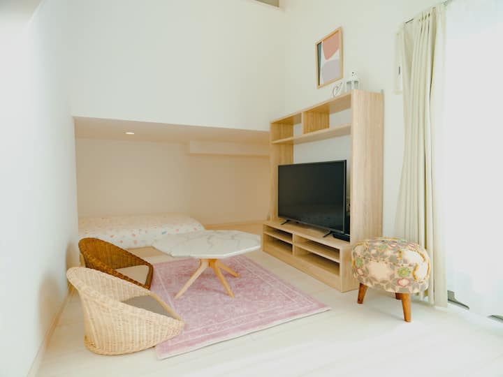 [Nr. 203] Pranë Stacionit Kumamoto!Kuzhinë elegante Maisonette Yogibo & TV me video app (jo për fëmijë)