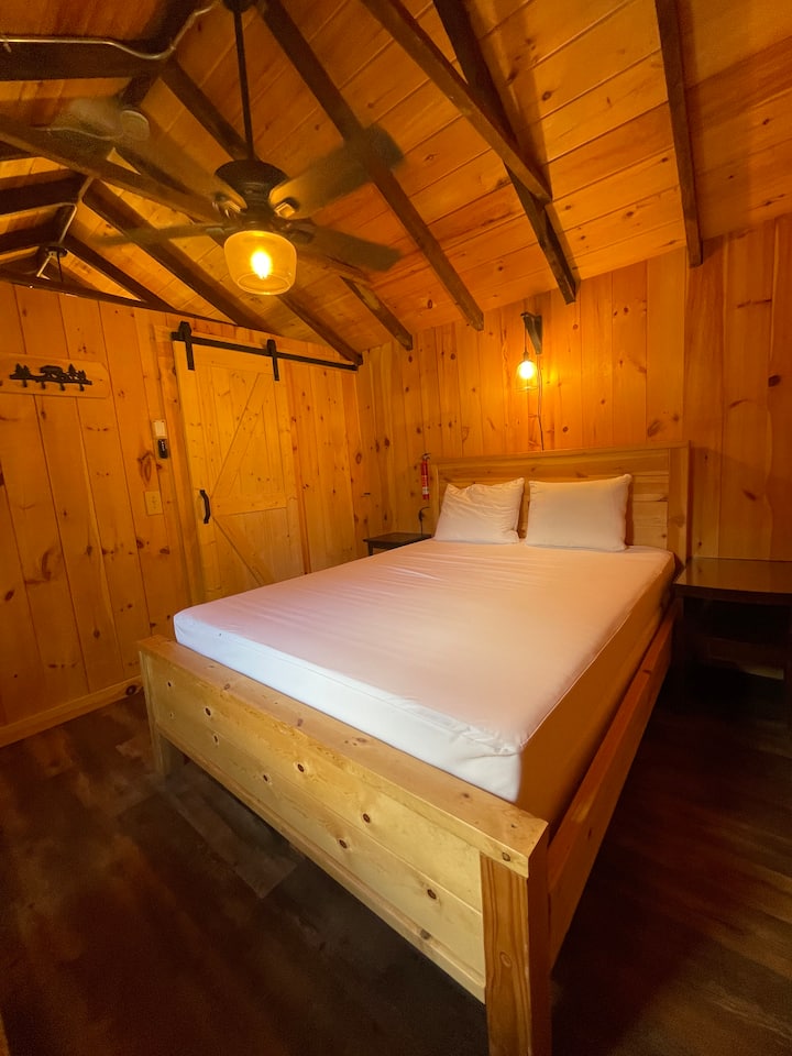 Kur është koha për të pushuar, dhoma e gjumit private ofron një vend të shenjtë të qetë me një krevat të rehatshëm me madhësi mbretëreshë të punuar me dorë dhe një derë unike me rrëshqitje në hangar. Një ventilator tavani dhe ngrohës me gaz ofrojnë rehati shtesë.