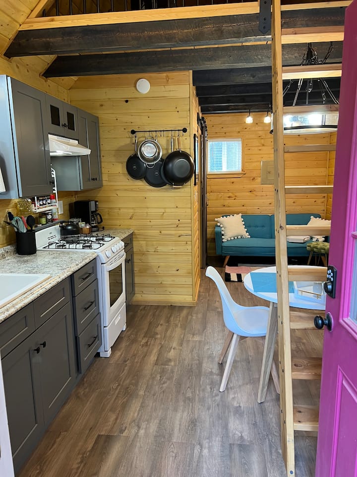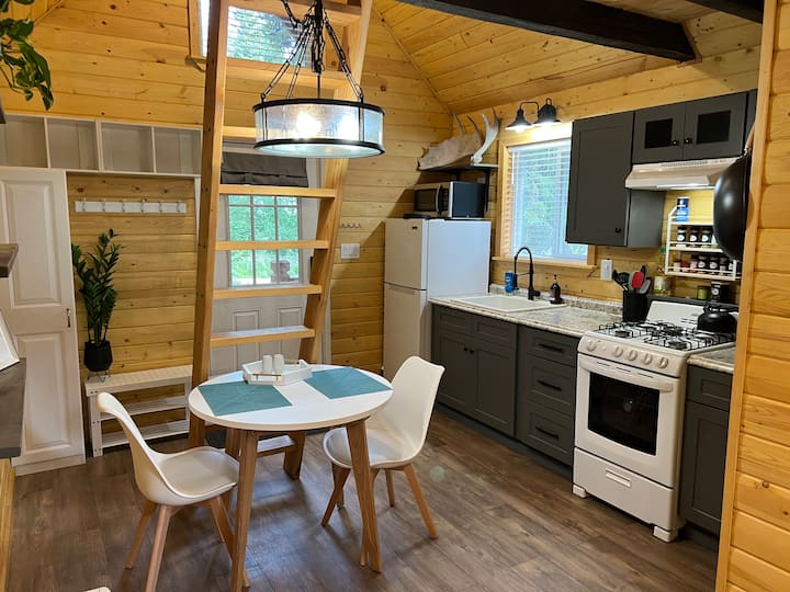 Mirë se erdhe në "Pink Door" në Pickering! Kjo kabinë e vogël e rehatshme ndodhet lehtësisht jashtë qytetit në ultësirën e Chena Ridge. Është brenda një lagjeje të qetë me qasje të lehtë në të gjitha Fairbanks që ka për të ofruar. E ndërtuar me dashuri dhe kujdes nga pritësi që më parë ka jetuar në një kabinë të vogël për vite me radhë, ka gjithçka që të duhet për ta bërë atë shtëpinë tënde larg shtëpisë ndërsa viziton Fairbanks. Rehatia moderne takon Alaskën fshatare. Hapësira e përkryer për një dyshe udhëtimi.
