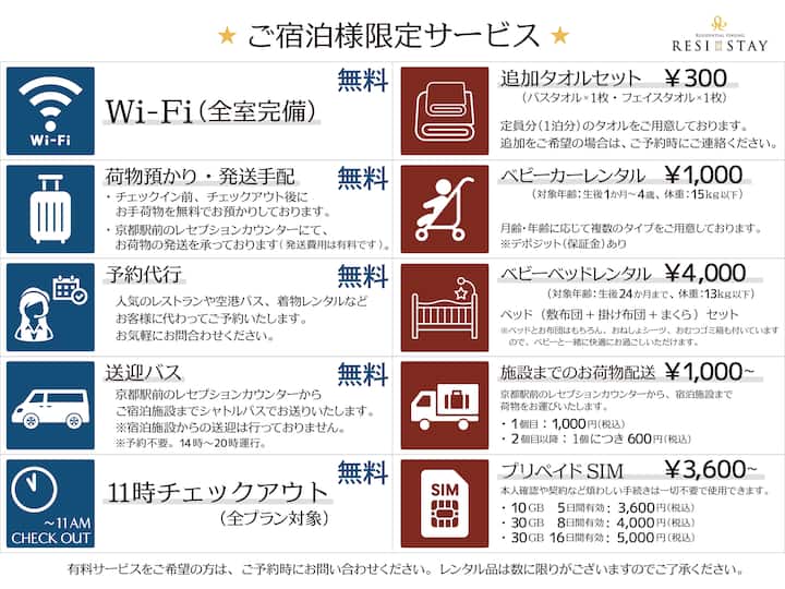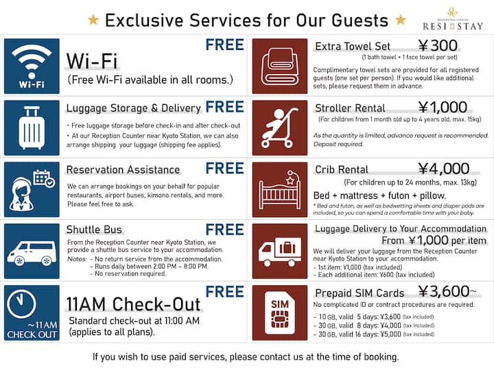 Në përputhje me urdhëresën e qytetit të Kiotos, aplikohet një taksë akomodimi.