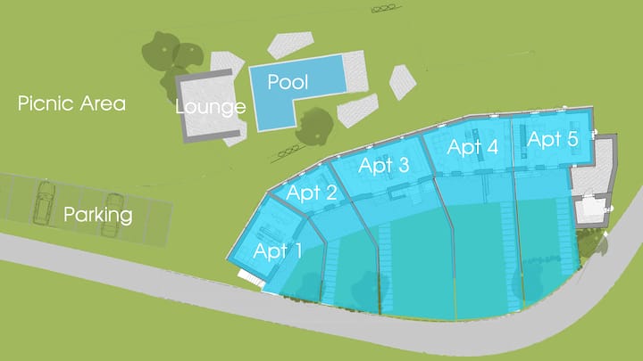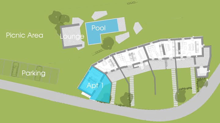 Ju keni WiFi falas, pishinë komunale dhe zonë të madhe të gjelbër për të shijuar!
