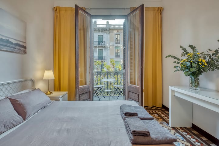 Dhomë dyshe e mahnitshme me ballkon me diell në Eixample