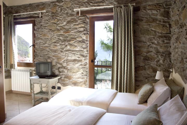 Në kodrat e qeta mbi Menaggio dhe vetëm 5 km nga brigjet e liqenit të Komos, ndodhet një cep i vogël i qetësisë dhe traditës, i përsosur për të kaluar një pushim relaksues. Një apartament i këndshëm në një shtëpi të ndërtuar prej guri karakteristike për fundin e viteve 1800 me dy dhoma gjumi dyshe brenda në suitë që mund të flenë deri në pesë vizitorë. Ka një sallë pritjeje të mirëmbajtur, kuzhinë të pajisur plotësisht dhe një tarracë të vogël. Pronarja e shtëpisë, Lia, mezi pret të të mirëpresë në 'The Stone House’ dhe ajo do të të rekomandojë me kënaqësi shëtitjet më të mira në fshatrat përreth dhe, natyrisht, rreth brigjeve mahnitëse të liqenit të Komos