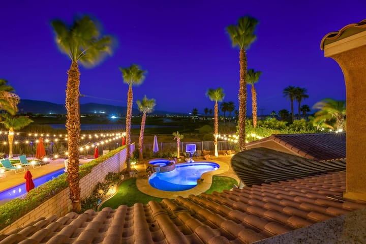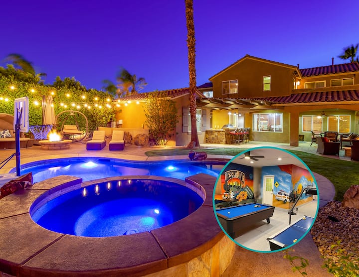 Aloha Palms të mirëpret me oborrin e saj të pasmë të stilit të resortit dhe shtëpinë e madhe me hapësirë me pamje nga fusha e golfit Terra Lago. Me një kuzhinë të jashtme të personalizuar, pishinë me ujë të kripur dhe spa, 3 gropa zjarri dhe ambiente të shumëfishta për t 'u ulur në natyrë. Me casita private dhe shtëpinë e madhe kryesore, ka shumë hapësirë. Dhomë masive lojërash me një tavolinë pishine, hokej në ajër, shigjeta, lojëra arcade dhe zonë lojërash Xbox dhe murale arti të personalizuara. Nuk nevojiten monedha… të gjitha lojërat FALAS! Pushimi i përkryer për të gjithë familjen.