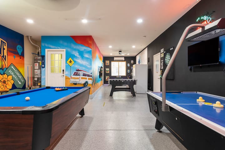 Nuk mund ta mundësh këtë dhomë MASIVE lojërash! Kjo hapësirë e mahnitshme përmban murale muri që janë pikturuar nga artistë vendas, 2 televizorë, 2 tavolina me 8 stola, drita neoni për ambientin, një tavolinë pishine, tavolinë hokeji në ajër, lojëra arcade, shigjeta dhe një zonë lojërash me një tastierë Xbox. Është një hapësirë që të gjithë do ta shijojnë!