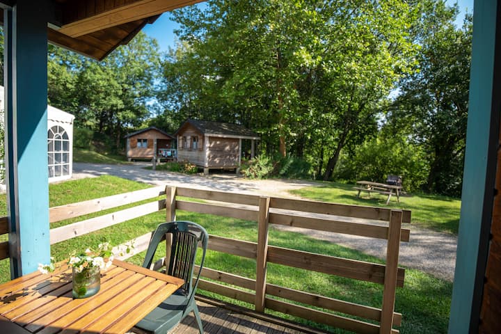 Kabinë druri 4 p me pishinë afër lumit Pyrénées
