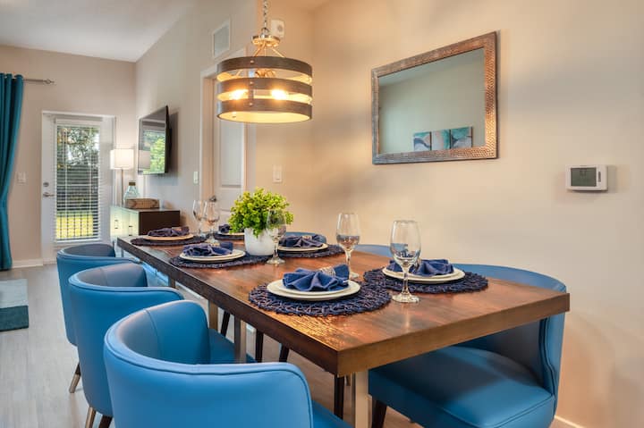 Kjo shtëpi luksoze pushimesh me qira strehon deri në 8 vizitorë dhe ofron një atmosferë të gjerë dhe mikpritëse për familjet dhe miqtë për t 'u shijuar. Me vendndodhjen e katit të parë dhe ballkonin privat, do të kesh vendin e përkryer për t 'u çlodhur dhe për të shijuar diellin e Floridës pas një dite aventure. E kemi projektuar këtë apartament kondominial për të qenë "shtëpia jote larg shtëpisë", duke ofruar të gjitha komoditetet që të duhen për të krijuar kujtime të paharrueshme.