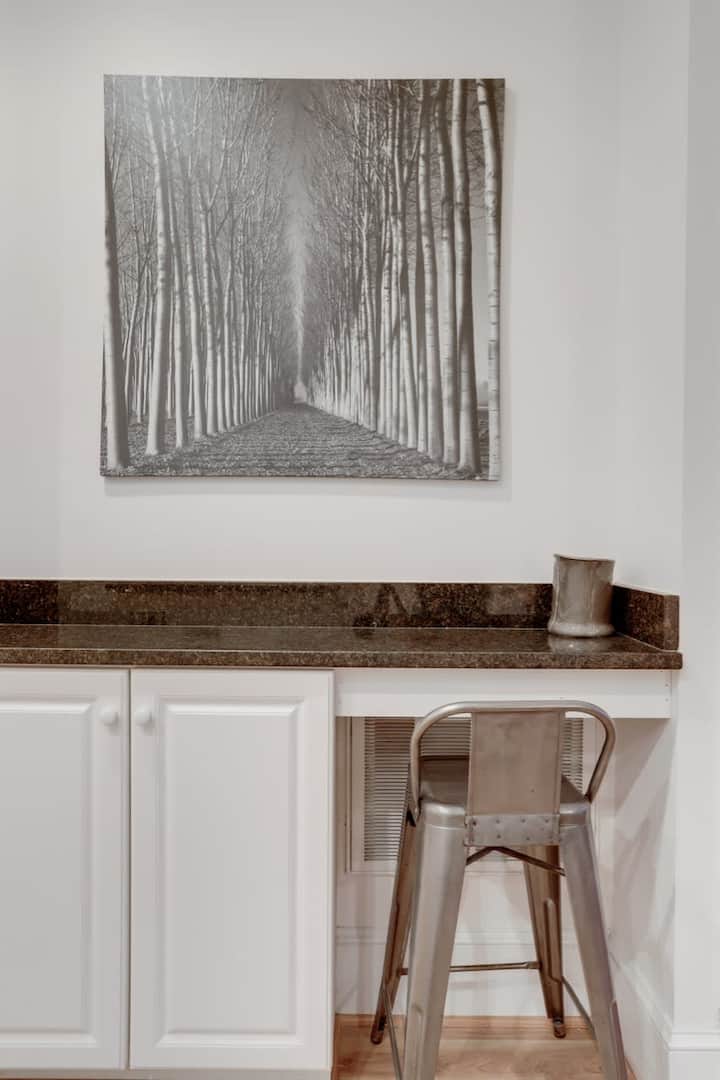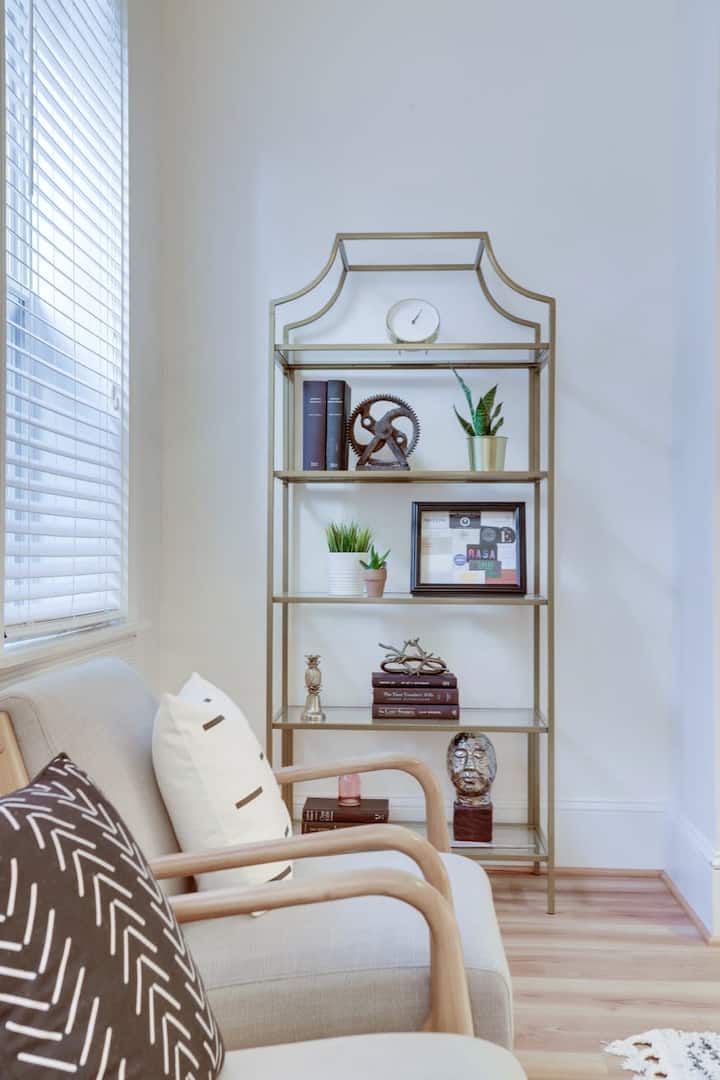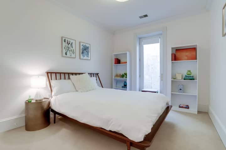 Një dizajn elegant dhe vendndodhje qendrore. I projektuar në mënyrë të veçantë me udhëtarin në mendje, ky apartament i mrekullueshëm i nivelit të kopshtit ofron të gjitha komoditetet e shtëpisë, me shërbimet dhe sharmin e një lagjeje historike urbane. Kjo shtëpi e mrekullueshme mund të shkohet në Kapitolin e SHBA, Gjykatën Supreme, Bibliotekën e Kongresit, Tregun Lindor, Whole Foods dhe shtëpinë e Kampionëve të Serisë Botërore 2019, The Washington Nationals! Shijo gjithë bukurinë dhe historinë e Uashingtonit.