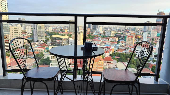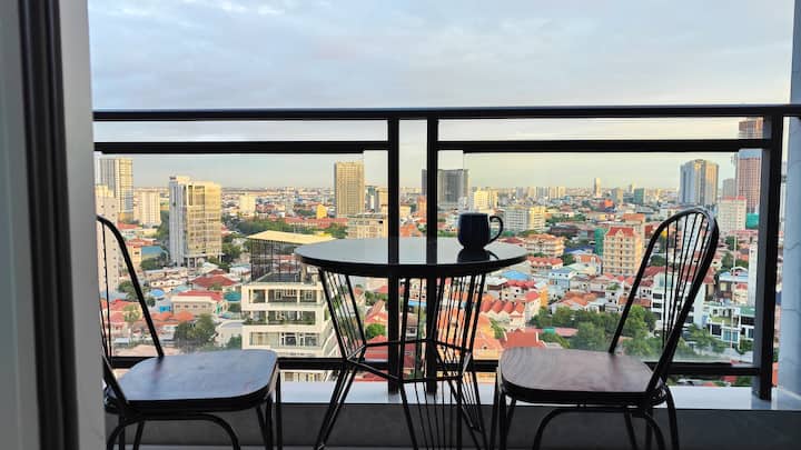 Apartament kondominial me stil lofti në Phnom Penh me pamje nga qyteti