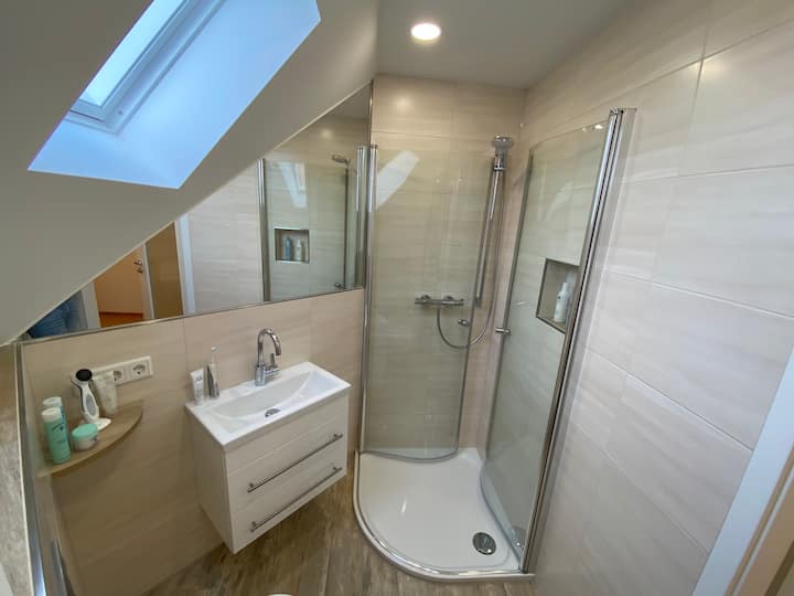 - Banjë private në dhomë