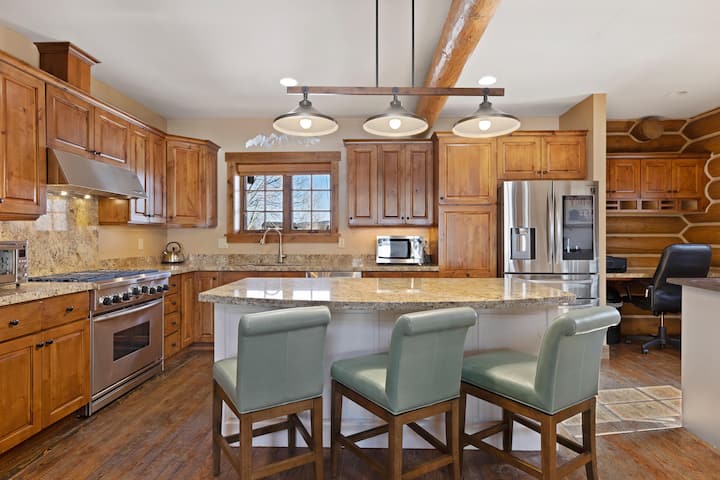 Rinovuar kohët e fundit në mishërimin e rehatisë, klasës dhe hijeshisë. Mëngjesi yt relaksues fillon i vendosur në një karrige të rehatshme me një filxhan të ngrohtë joe nga stacioni i kafesë. Do të mendosh për aventurat e ardhshme të ditës, të shijuara në këndin e bibliotekës, me një pamje të lavdishme të vargmalit Big Hole nga dritarja e fotografisë. Kuzhina e pajisur mirë ka gjithçka që të duhet për të përgatitur një darkë gustatore në grilën me raki infra të kuqe Weber me 6 djegie ose për të marrë një sanduiç të shpejtë në prodhuesin e panineve para se të nisesh për një raund golfi. Dhoma e madhe e madhe me ambient ngrënieje, dhomë ndenjjeje e kompletuar me televizor të madh me ekran të sheshtë dhe oxhak, është vendi i përkryer për t 'u çlodhur pas një dite eksplorimi të këtij rajoni dinamik të Yellowstone-Teton.