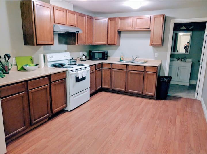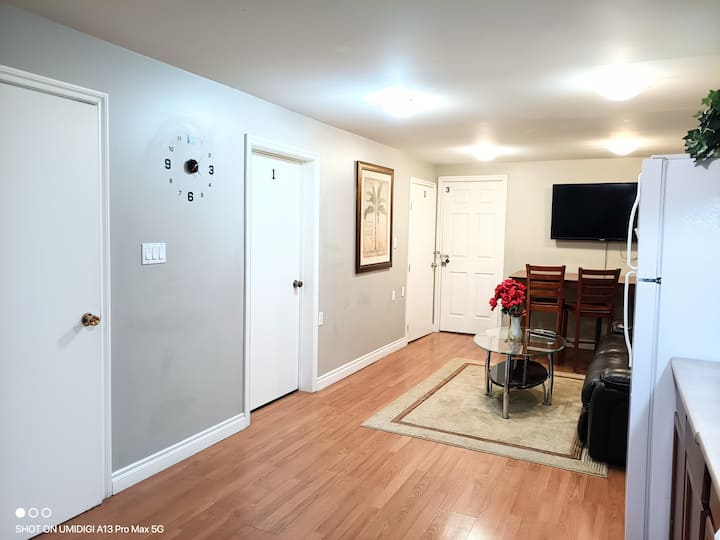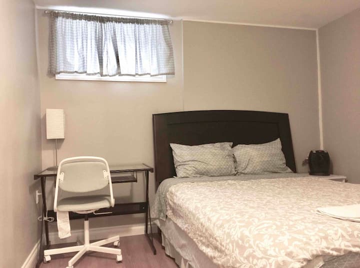 Kjo dhomë private e rehatshme në bodrum është e përkryer për vizitorët që kërkojnë një pushim të mirë gjatë natës në një krevat të rehatshëm me një banjë jo të përbashkët në suitë. Kuzhina ndahet me vizitorë të tjerë. Lagjja është e qetë dhe e sigurt.