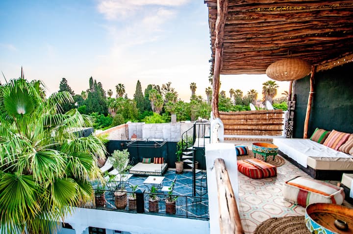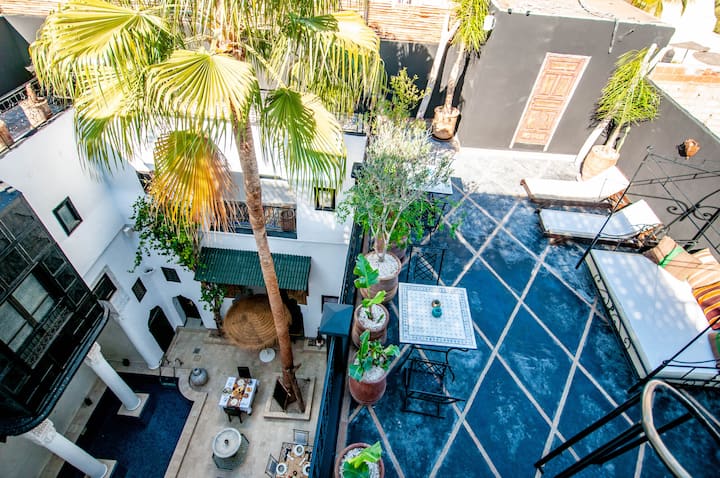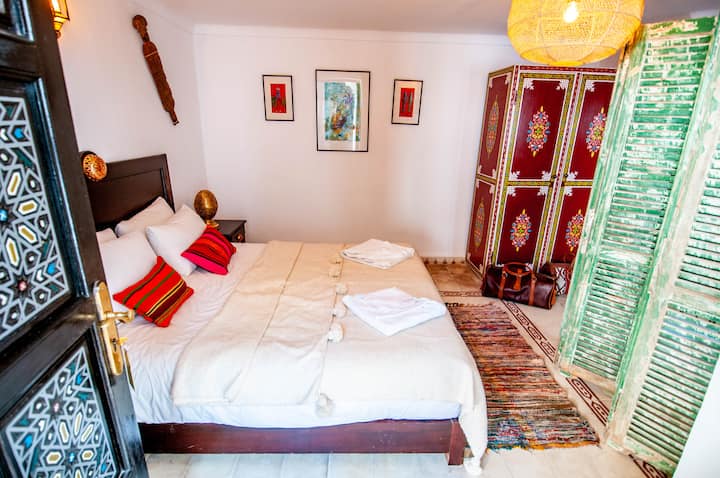 5 dhomat e gjumit dhe suita familjare e kësaj shtëpie miqsh janë origjinale, të gjitha të dekoruara me një përzierje materialesh, tadlakt, mermeri, druri, zellijes, pllakave të çimentos dhe qeramikës.