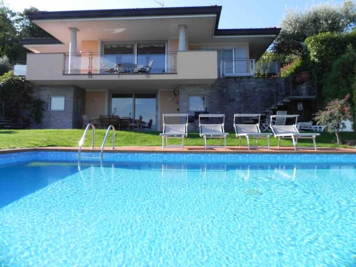 Vila Diamante me pamje nga Liqeni Maggiore dhe pishinë