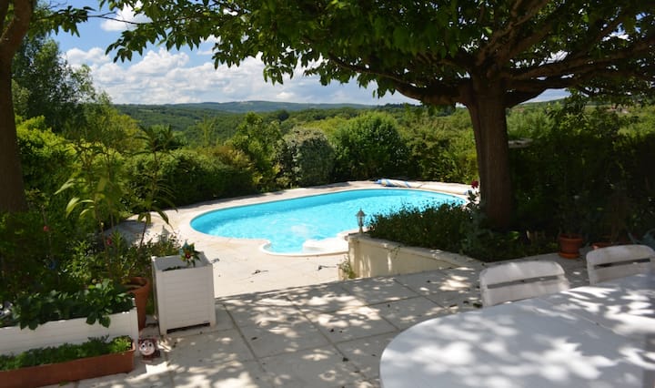 Shtëpi pranë Figeac me pishinë dhe pamje të bukur