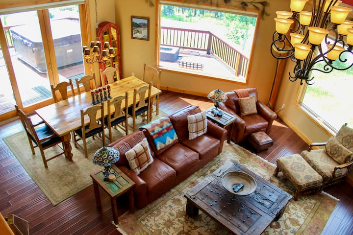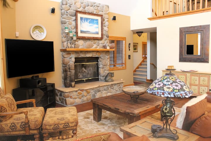 Dhoma e ndenjjes: Relaksohu në dhomën e ndenjjes ftuese, një hapësirë e bollshme dhe e rehatshme e projektuar për t 'u çlodhur ose për t' u argëtuar. Kjo zonë e mobiluar mirë ka ndenjëse të rehatshme, duke përfshirë një divan prej pelushi dhe karrige për t 'u ulur, një oxhak të ngrohtë prej guri, një tavolinë të madhe kafeje, një televizor inteligjent dhe mundësinë për të parë pamjet mahnitëse të Wheeler Peak përmes dritareve dykatëshe nga dyshemeja në tavan. Kjo qendër nxit biseda të gjalla, net të paharrueshme filmash dhe seanca emocionuese me letra dhe lojëra tavoline.