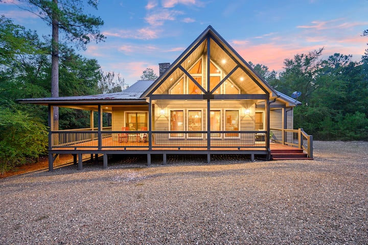Zbulo sharmin e qetë të Lazy Canoe Lodge, të vendosur midis pishave të larta. Kjo lozhë luksoze ka një plan dyshemeje të hapur njëkatëshe nën një tavan madhështor prej 20 metrash të katedrales rustike, të theksuar nga emri i saj, një llambadar magjepsës me kanoe prej druri. Me 4 dhoma gjumi King që ofrojnë parajsa private çlodhjeje dhe një dhomë lojërash të pajisur plotësisht për argëtim, Lazy Canoe Lodge është një arratisje ideale për familjet ose çiftet që kërkojnë kohë cilësore së bashku. Akomodon deri në 14 persona!