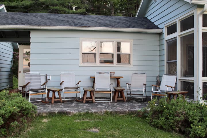 Shtëpi Adirondack buzë liqenit në Liqenin e Çamërisë