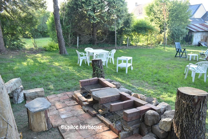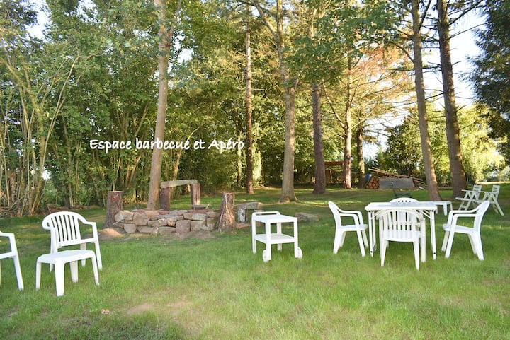 Nathalie dhe Wilfried ju mirëpresin gjatë gjithë vitit në këtë vilë të rehatshme për 14 persona, në zemër të pyllit Charnie en Sarthe