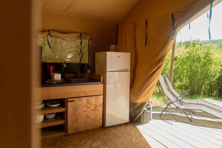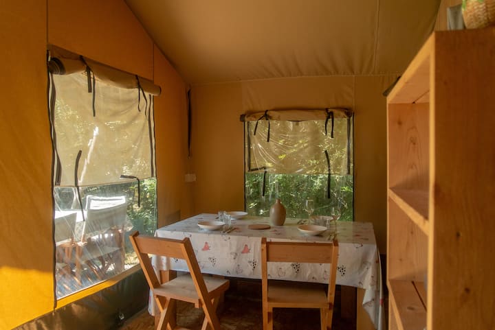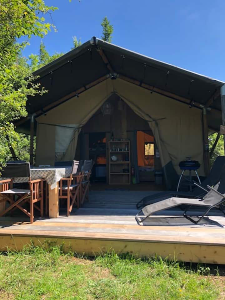Tendë e rehatshme safari e rrethuar nga natyra
