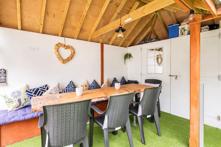 Nëse dielli del nga kopshti i madh, i mbyllur i oborrit në këtë vilë Caernarfon është një kurth i këndshëm dielli ku mund të bësh një zhytje të merituar në vaskën e nxehtë të izoluar.