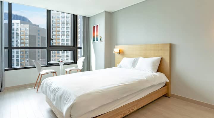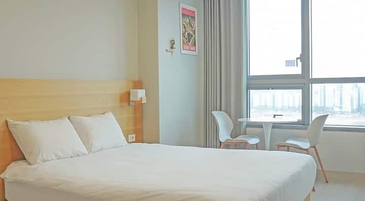 [Dhoma e gjumit "Queen Deluxe" Qëndrim i gjatë me zbritje të veçantë] Rezidenca magjepsëse në Songdo, Qëndrimi i dritës së hënës