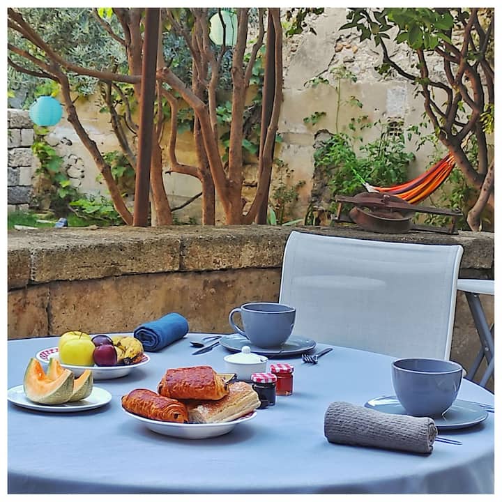Apartament me kopsht dhe pishinë të përbashkët