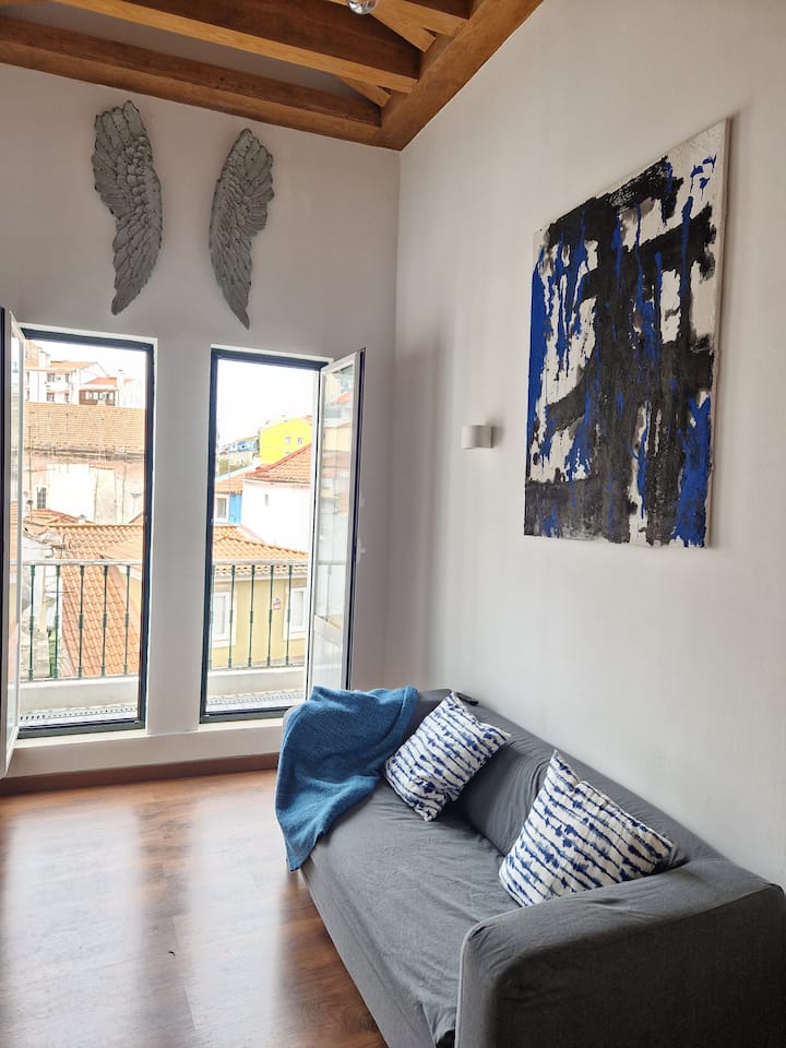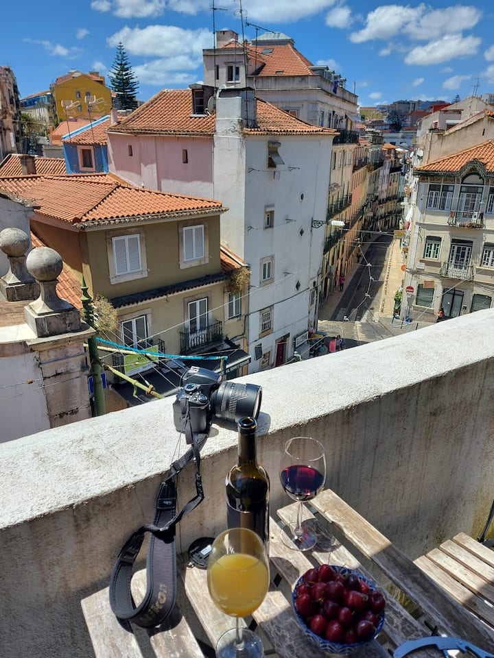 Ky akomodim i bollshëm ka dy dhoma gjumi me krevate dopio për rehatinë tënde, një kuzhinë, një banjë dhe një ballkon të vogël me një tavolinë dhe karrige ku mund të shijosh pamjet e rrugës dhe të shikosh tramvajin ikonik nr. 12 ndërsa ngjitet në kodër drejt kështjellës São Jorge. Ky ballkon i vogël është vendi i përkryer për t 'u zhytur në jetën lokale dhe për të shijuar një kafe ose një gotë verë ndërsa vëzhgon ngutjen dhe nxitimin e lagjes.