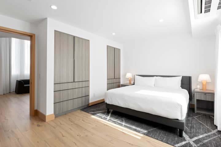 Kjo njësi e veçantë është një dhomë gjumi e bollshme me 1 divan tërheqës të përsosur për familjet ose miqtë që udhëtojnë. Krevat i rehatshëm King-size i pajisur plotësisht në çarçafë luksozë të shkallës së hotelit. Banjë e shkëlqyer me dush shiu me graft, pasqyrë me ndriçim LED, tualet Toto Neorest dhe artikujt bazë të përditshëm.