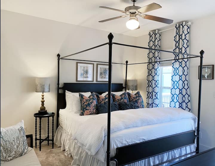 Plazhi më i bukur i afërt është rreth 1/2 milje larg......Windmark Beach. Ndërsa mund të ecësh/të ngas biçikletën, unë zakonisht shkoj atje sepse është shumë e lehtë të marrësh karriget, frigoriferin, çadrat etj. Është shumë e lehtë të parkosh në shtegun e shkurtër në plazh dhe ka ambiente të reja dhe shumë të bukura (banjë) atje. Zakonisht është një plazh i qetë dhe i bukur.....i përkryer për familjet. Mund të ecësh lehtësisht në plazh deri në Qendrën e Komunitetit Windmark ku do të gjesh disa restorante të bukura. Personalisht më pëlqen "The View on 98" për mëngjesin e vonë... Bloody Mary 's dhe Mimosa' s. Ne zakonisht organizojmë kampin tonë të plazhit në mëngjes në hyrjen e parë të Windmark Beach dhe pastaj ecim poshtë për Brunch në The View dhe pastaj të kthehemi në zonën tonë për të kaluar ditën. Rreth 1 minutë më tej është Port St. Joe Beach dhe rreth 5 minuta më tej është Mexico Beach. Të dyja janë plazhe me rërë të bardhë dhe do të gjesh edhe disa njerëz të tjerë atje. Megjithatë, asnjë nga plazhet lokale nuk është i komercializuar ose i mbushur me njerëz. Të gjitha plazhet janë zbukuruar që nga uragani Michael në vitin 2018. Windmark Beach dhe Port St Joe Beach janë të dyja miqësore me qentë. Mexico Beach NUK është miqësore me qentë.