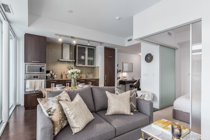 Eja të eksplorosh qendrën e Torontos ndërsa qëndron në një apartament kondominial luksoz, modern dhe elegant me krevat të rehatshëm dhe njësi të pajisur plotësisht, duke përfshirë tavolinën e punës për t 'u siguruar që të arrish gjithçka.