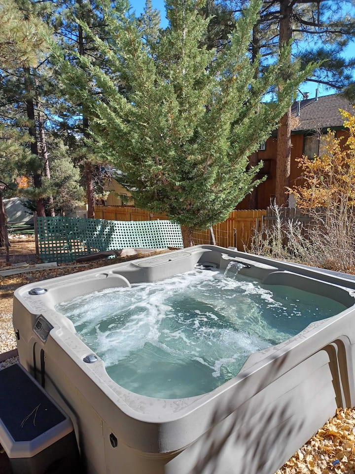 Vaskë E RE ME HIDROMASAZH! Kabinë e adhurueshme me një DHOMË LOJËRASH FANTASTIKE! Dhoma e lojërave ka një dërrasë me shigjeta, tavolinë pishine, tavolinë Foosball dhe LED fantastik që do ta bëjnë udhëtimin tënd Big Bear të mahnitshëm. SMART TV me Netflix, Hulu, YouTube dhe më shumë. Kjo kabinë fle rehat të gjithë familjen dhe është e përshtatshme për qentë. SUPER AFËR SHPATEVE për çiklizëm malor VEROR ose ski DIMËRORE dhe snowboarding!