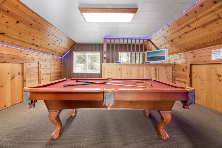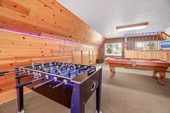 VASKË ME HIDROMASAZH! Kabinë e adhurueshme me një DHOMË LOJËRASH FANTASTIKE! Karikues EV! Tabelë shigjetash, tavolinë pishine, tavolinë futbolli dhe LED fantastike që do ta bëjnë udhëtimin tënd në Big Bear të mahnitshëm. SMART TV. E gjithë familja fle rehat dhe e përshtatshme për qentë. SUPER AFËR SHPATEVE, FSHATIT dhe LIQENIT!