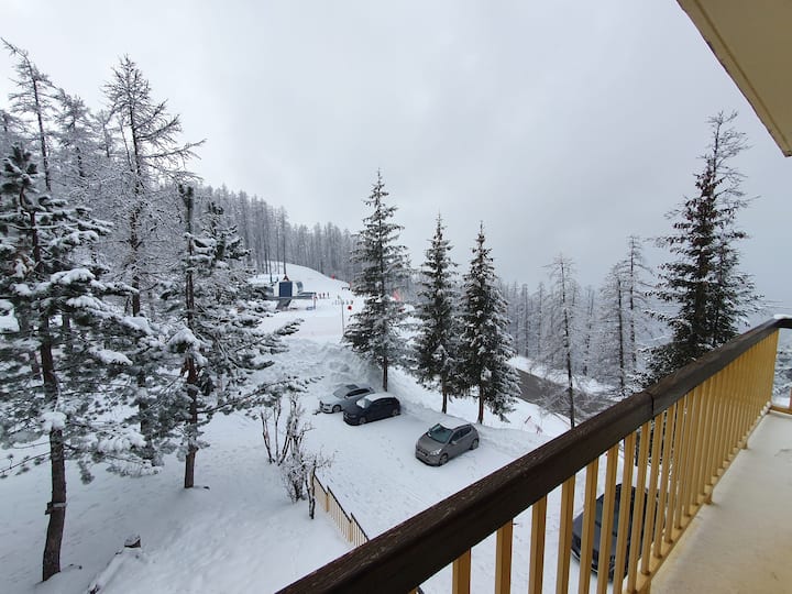 Skijim brenda ose jashtë në teleferikë skish në afërsi