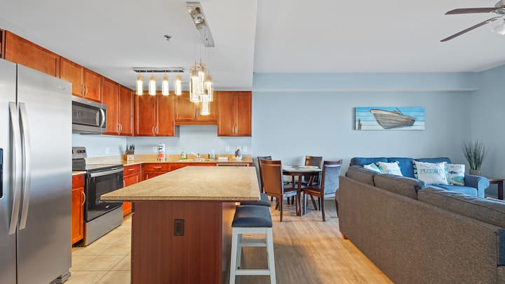 Ambienti luksoz i këtij apartamenti të ndritshëm 1BR 2Bath me dhomë marinari dhe dy divanë për fjetje "queen" në komunitetin madhështor të skelës Laketown. Ofron një pushim relaksues dhe pamje prej një milion dollarësh ndërsa ecën në distancë nga plazhi me rërë, restorantet, dyqanet dhe atraksionet më të mira.